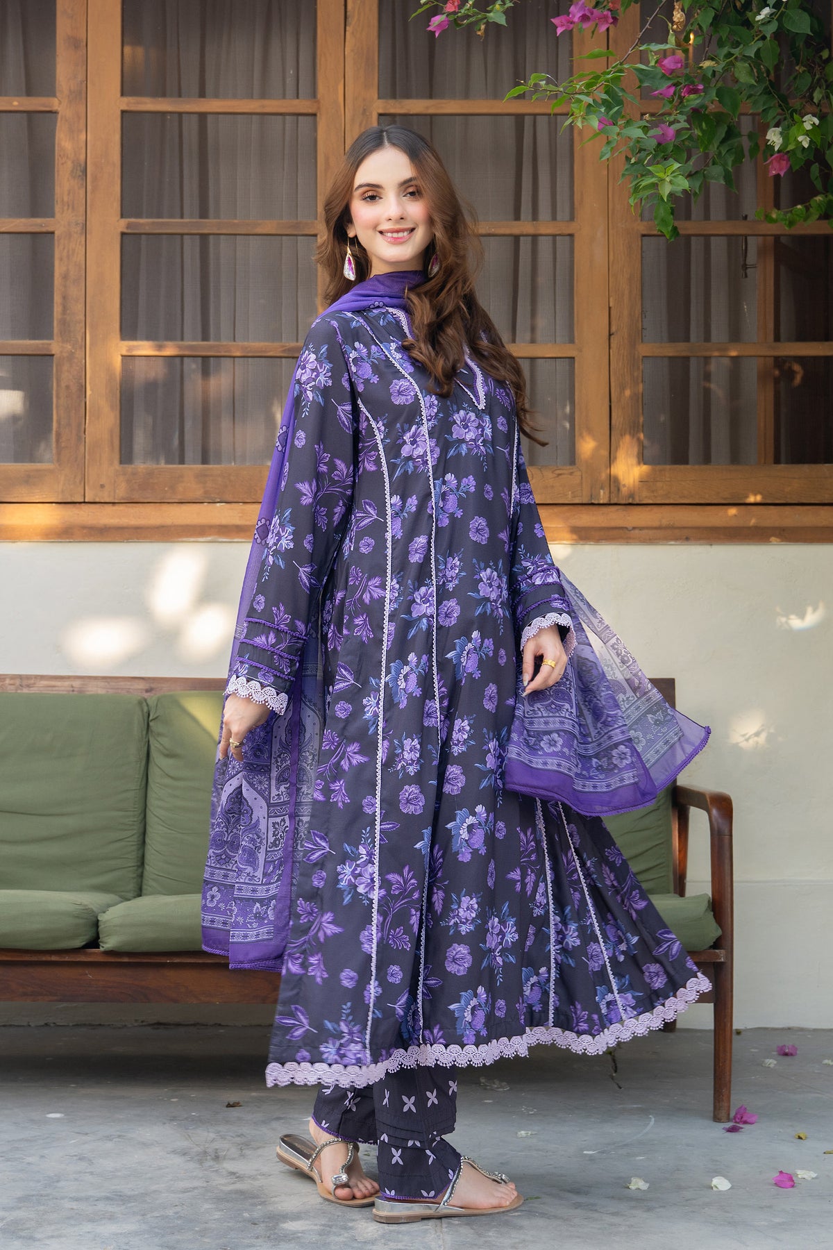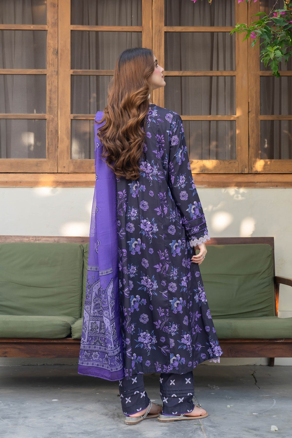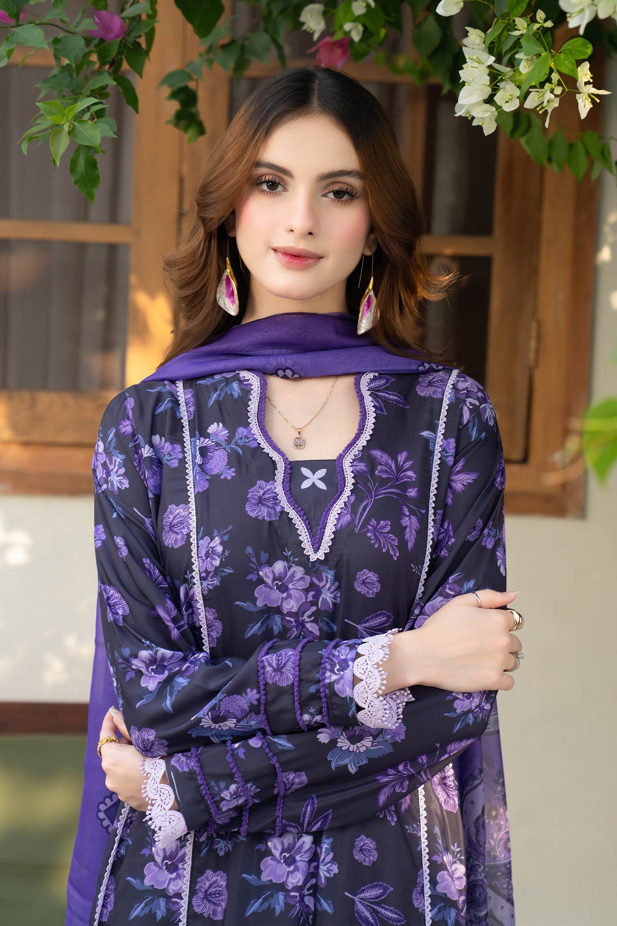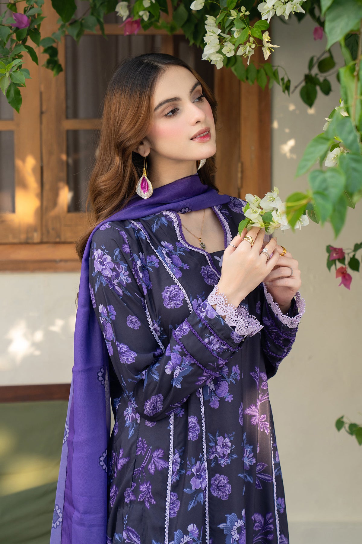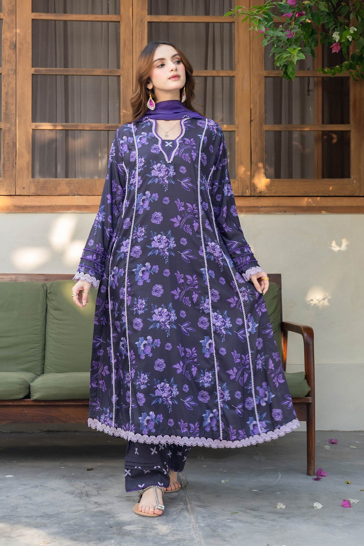 Deep violet base adorned with lilac florals, paired with a beautifully patterned dupatta that brings depth and richness to the look. The intricate detailing and subtle sheen make Amaris a refined winter favorite for day-to-evening wear.