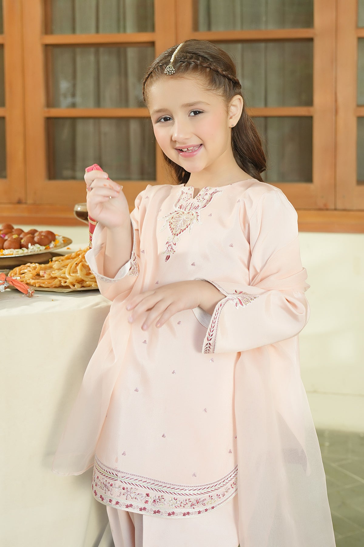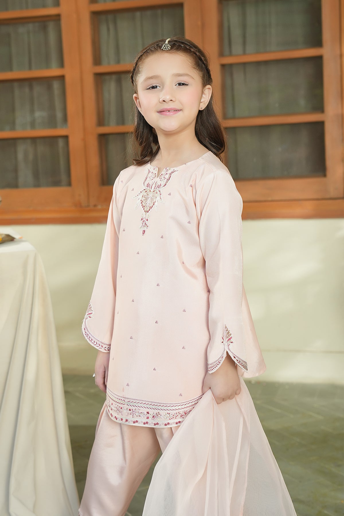 Color: PeachFabric: Sheesha SilkWork: Embroidered Shirt with ShalwarBottom Style: Duppatta: