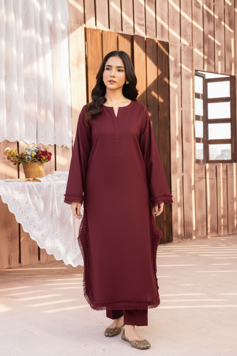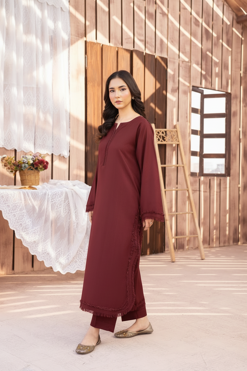 A clean winter staple featuring fine tonal embroidery for a polished look.